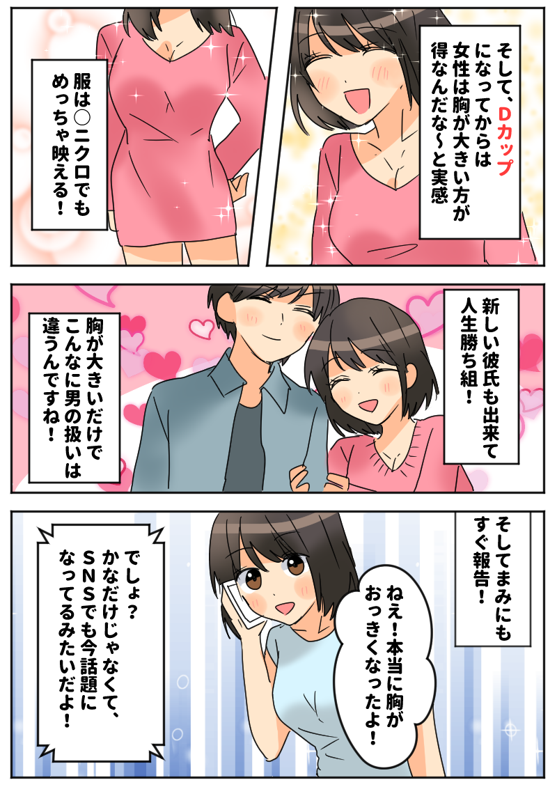 友達と海にいった時、貧乳過ぎて私だけナンパされない…という事件が起きて流石に恥ずかしくて"せめてDカップは欲しい”と思いました。たった数日で実感できるジュエルアップを半信半疑で買ったらDカップになれました♪