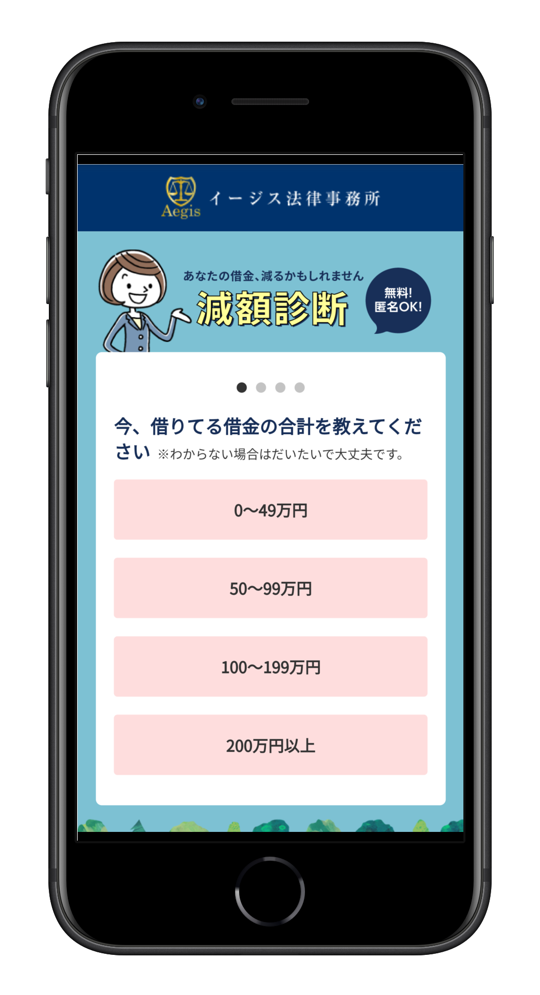 借金減額診断は、簡単な質問に答えるだけで借金を減額できる可能性を診断できます。
